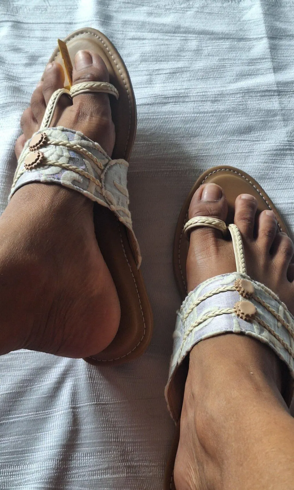 Tan & Try White Kolhapuri Flats